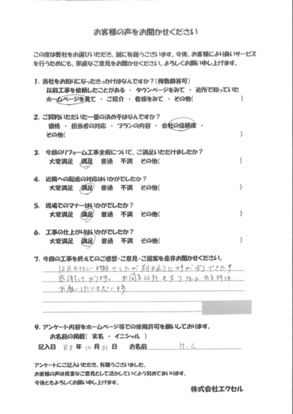 12月の忙しい時期でしたが期日通りに工事が完了できた事、感謝しております。お風呂以外も又リフォームする時はお願いしたいと思います。